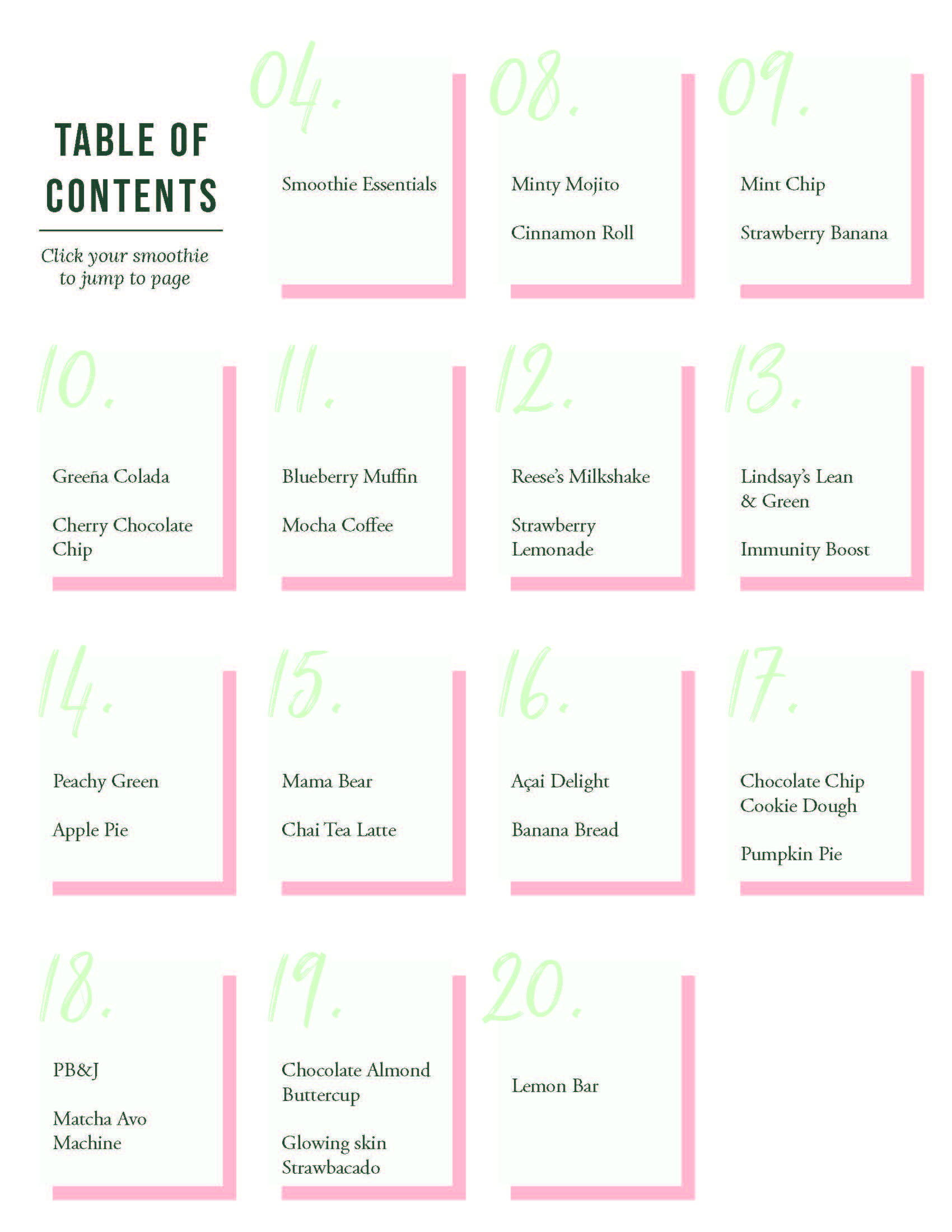 Check out the table of contents below to see the smoothies I'll be sharing!